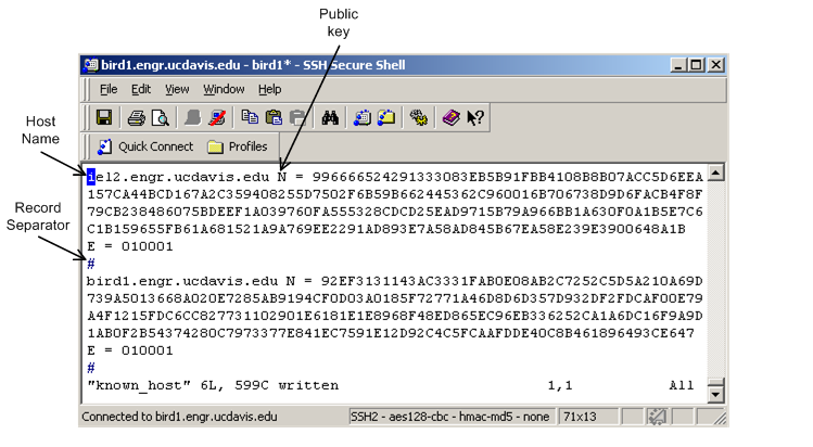 - Known Host File: contains the host name and public key of each agency, as an identifier, in a network.
